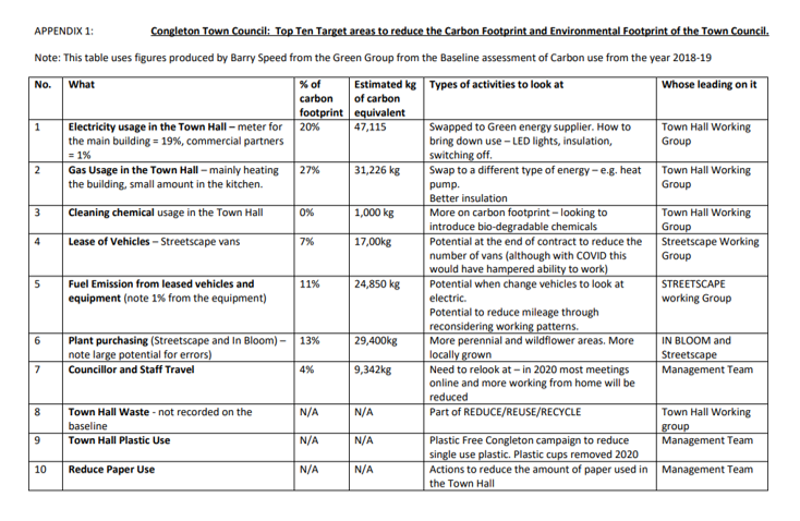 I’m a member of the Congleton Green Group which met in November. We discussed options for carbon offsets, as well as our set of target areas for improvement in the coming years.