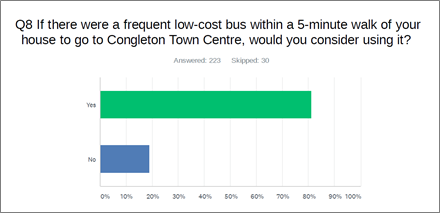 Our bus survey results have now been published and were presented at the Community & Environment Committee. Not surprisingly, most respondents said that buses were not frequent enough, too expensive and ‘don’t go where I want to go’. Almost all respondents used a car for most journeys that were too long to walk. However, it was interesting that more than 80% of people said they would use buses if they were cheap and convenient enough. We have sent the results to Cheshire East Council as input to the strategy for buses. We would very much like Congleton to be a pilot town for improved bus services if and when funding becomes available.