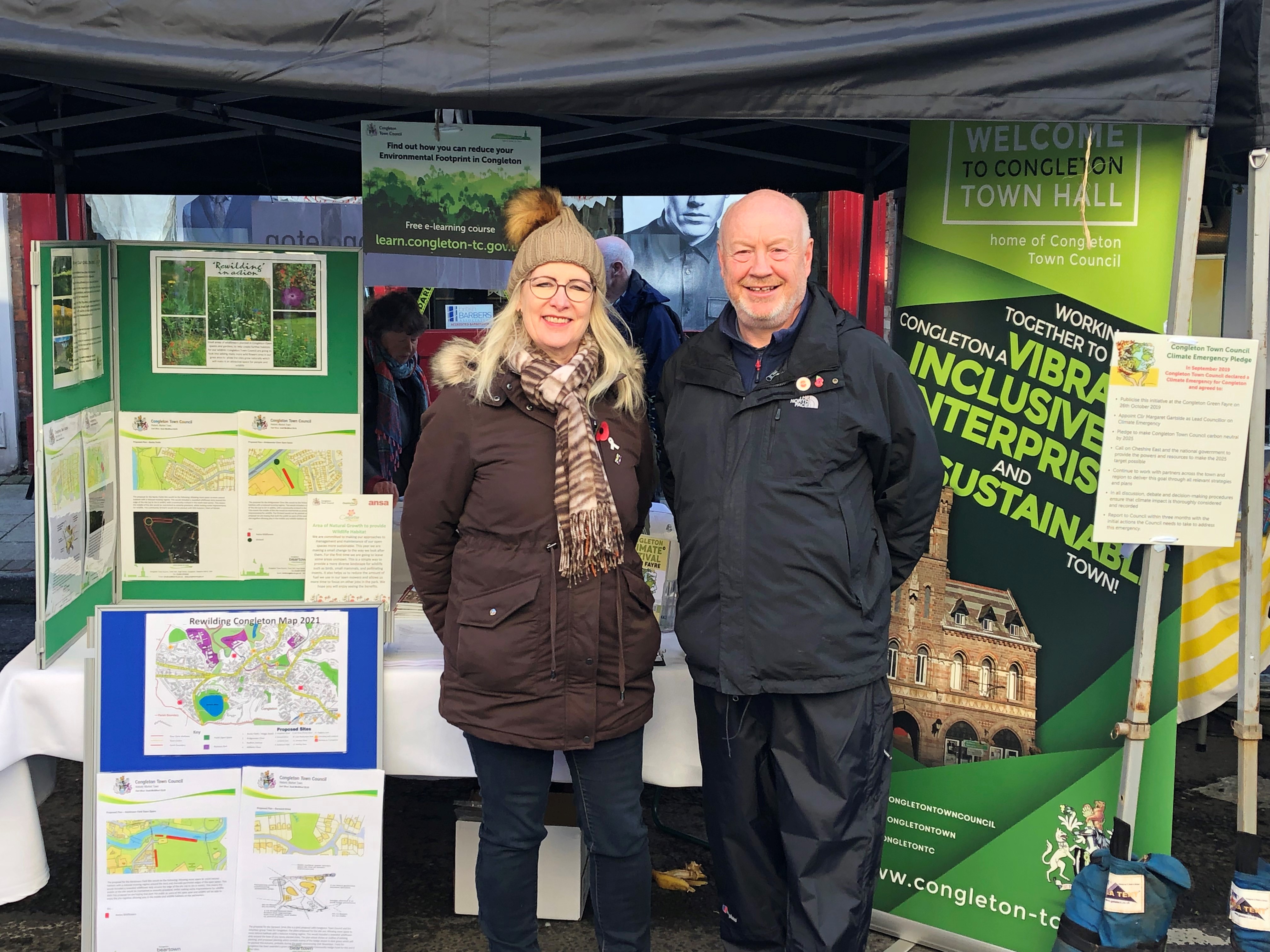 I attended the Green Fayre in Congleton on 31st October and spent the afternoon on the Congleton Green stall, explaining our Town Council projects to reduce carbon emissions and increase biodiversity. The Fayre was part of a series of events billed Congleton Climate Festival and a big shout out is due to organisers Jackie MacArthur, Martha Hayes, Barry Speed and Peter Aston.
