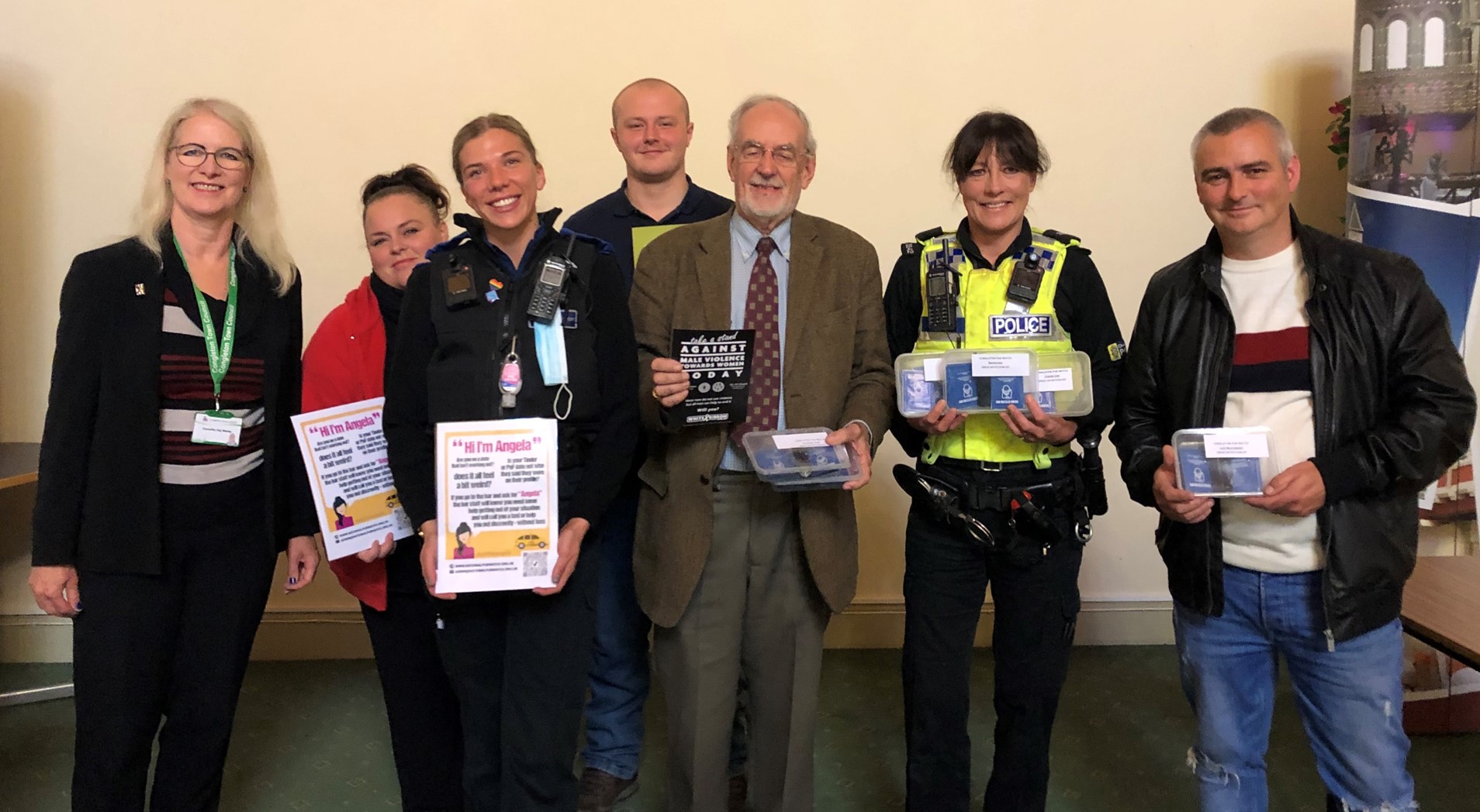 I attended a meeting with the PubWatch group in the Town Hall at which PC Helen Hood and PCSO Amy Heath gave a talk about drugs, including drink spiking. Many of the pub and club owners were very appreciative of the up to date information. We also handed out hate crime leaflets (see above), ‘Ask for Angela’ Posters (for women who do not feel safe), Open The Door (domestic abuse) posters for toilet doors, and White Ribbon leaflets.