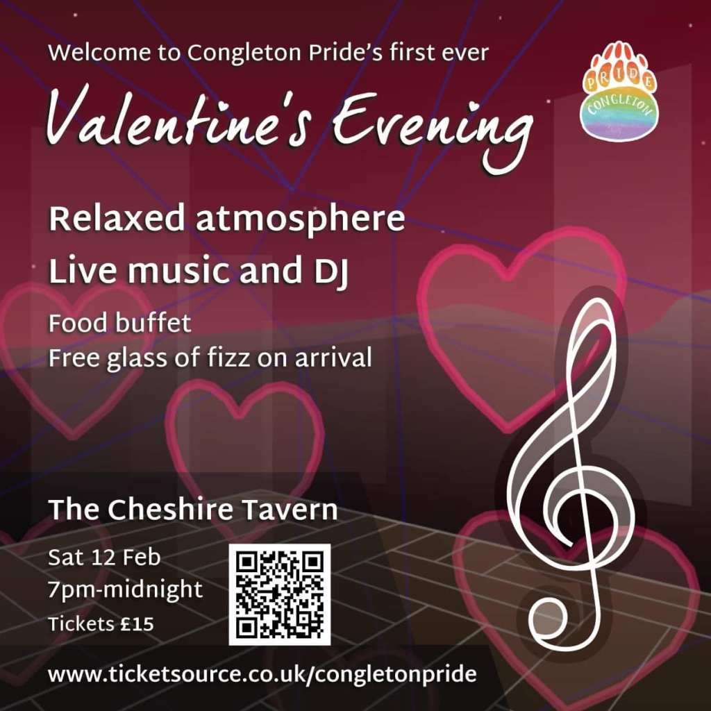 I was happy to attend Congleton Pride’s first Valentine’s Evening. This is part of a series of events for the LGBTQ+ community and anyone else who would like to join in, both as fundraisers for the main Pride event and as social events in their own right. It was a brilliant night and many thanks to the organisers. There has already been a cinema night and in March there will be a St Patrick’s Day event.