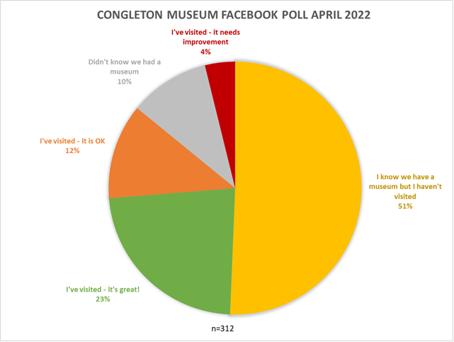 One interesting finding was that half the people we asked know that we have a museum in Congleton but have not yet visited. Our future website and other digital assets can certainly help encourage people to come and see the important collection of objects we have, as well as reaching out beyond Congleton to interested people all over the country, and world.