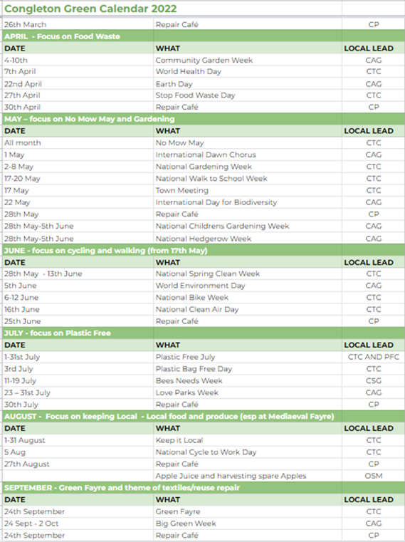 Please join in our events by sending photos or videos of what you are doing, or putting them on social media with the hashtag #CongletonGreen.