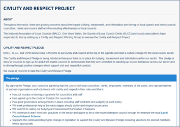 The National Association of Local Councils has been conducting a project called Civility and Respect, to put together a package of resources and services to help local councils implement best practice in councillor conduct.