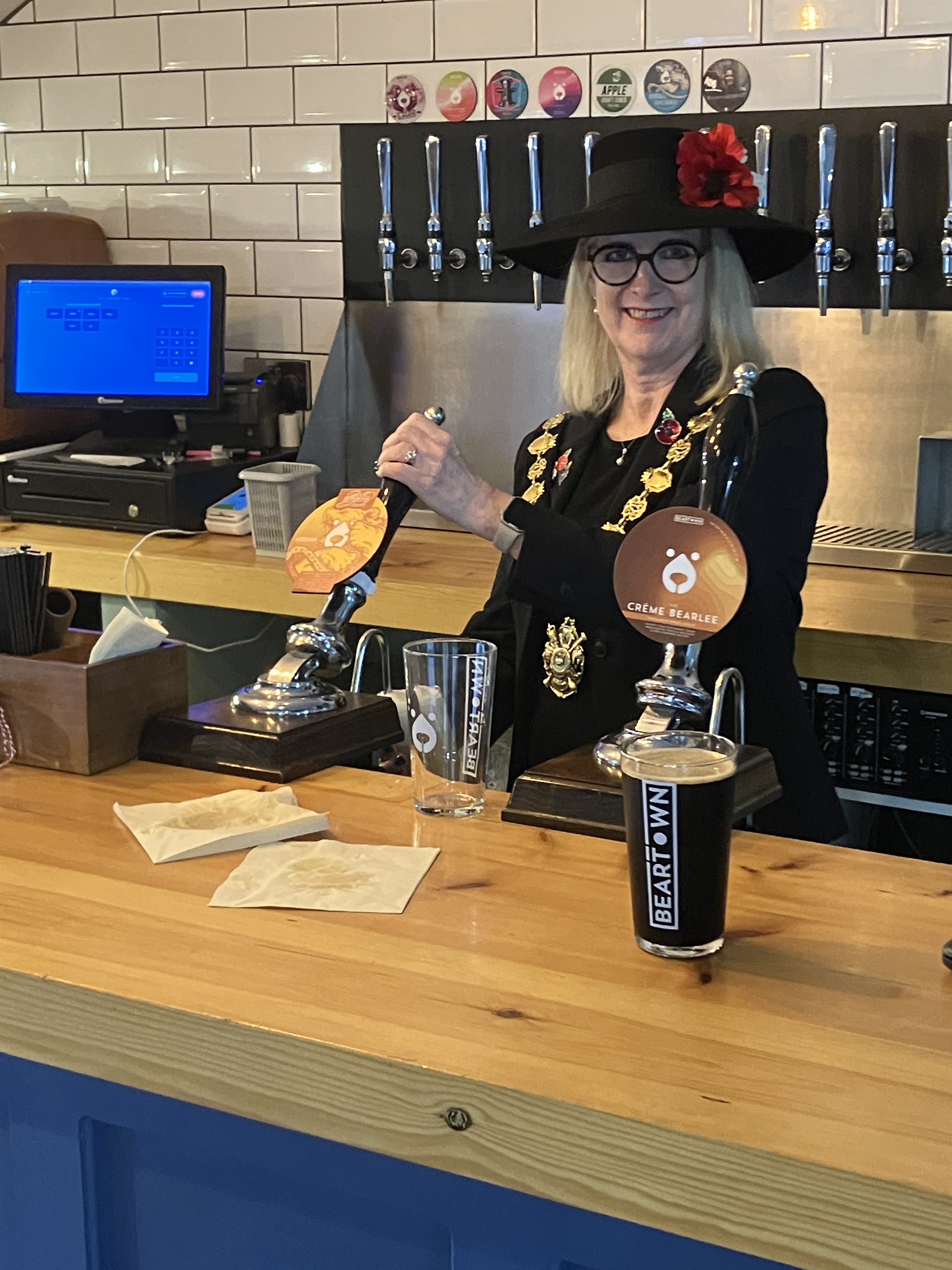 I marched in the parade, laid the wreath on behalf of the Town Council and made the welcome speech in the Town Hall, exchanging gifts with the General from the Brigade. Then we gave them lunch and a tour of the Beartown Brewery.