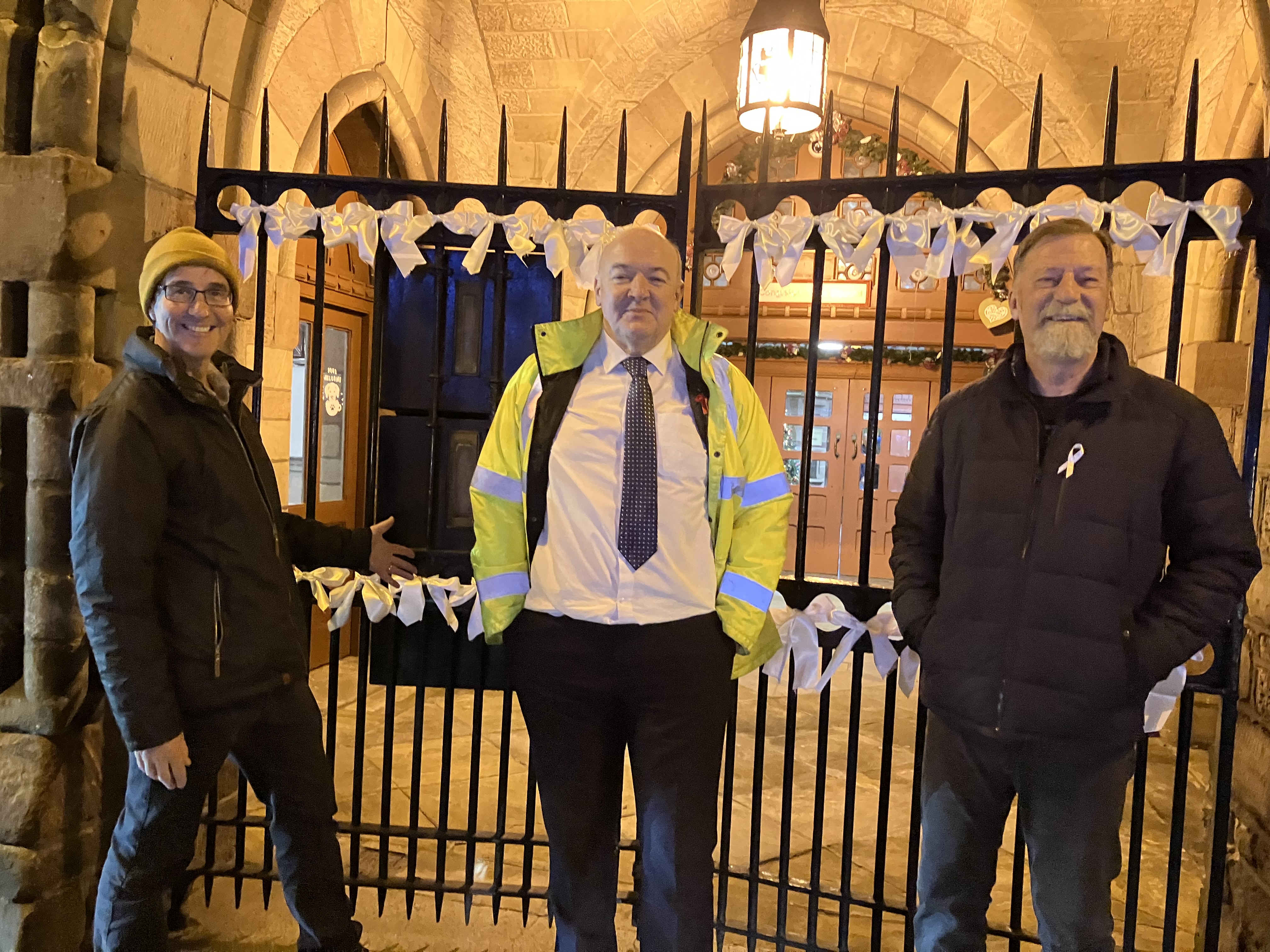 - Flying the White Ribbon flag from the town hall and white ribbons on lampposts