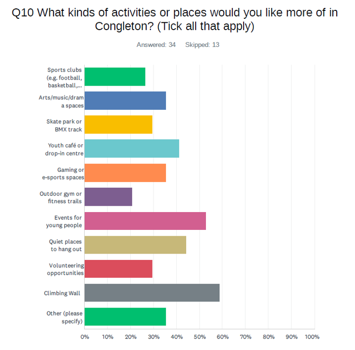 Barney and Haru made some TikTok videos to promote a survey of young people in Congleton. The results were very interesting, with a ‘climbing wall’ being the most asked-for new facility.